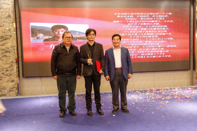 ?中國(guó)作家協(xié)會(huì)副主席吉狄馬加和公司董事長(zhǎng)、著名作家儲(chǔ)吉旺將10萬(wàn)元大獎(jiǎng)授予溫州小說(shuō)家東君