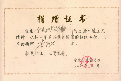 近日,寧波如意向市慈善總會捐款100萬元,至此,“吉旺慈善幫困基金”增加到1300萬元。儲吉旺說,他把企業(yè)比作一棵樹,職工是一條根,樹沒有根的話,樹不能成長;而有根沒有樹,這個根也不會存在,所以企業(yè)和員工的關(guān)系,是樹同根的關(guān)系。這是我們對社會的一種反哺,一種感恩。據(jù)統(tǒng)計,至今儲吉旺和公司累計向慈善公益事業(yè)捐款1.2億元。