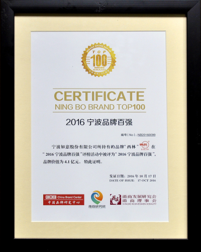 “寧波品牌百強(qiáng)榜”是寧波首個(gè)按照國際標(biāo)準(zhǔn)制定的權(quán)威品牌榜單,有寧波品牌“奧斯卡”的美稱。 在“2016寧波品牌百強(qiáng)榜單”中如意公司“西林”品牌獲評(píng)“2016寧波品牌百強(qiáng)”和“2016寧波智能制造品牌TOP20”。