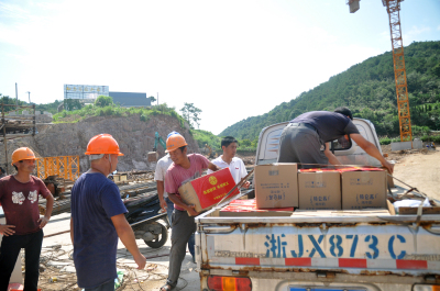 7月13日,縣總工會常務(wù)副主席婁堅一行帶著慰問品來到如意新廠房建設(shè)工地現(xiàn)場,慰問一線建筑工,帶去了縣總工會對一線員工的關(guān)愛。公司工會主席徐臻陪同慰問。 天氣炎熱,在如意新廠區(qū)施工現(xiàn)場,工人們?nèi)栽谕夜ぷ髦鋱砸恍袔еd有防暑降溫用品的卡車來到工地,將防暑降溫用品遞到一線員工手中,為從事露天、戶外作業(yè)的一線員工送去清涼。
