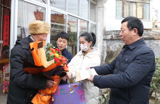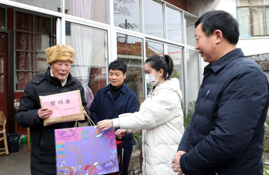 春節(jié)臨近,1月7日,寧??h退役軍人事務(wù)局、縣慈善總會(huì)與寧波如意股份有限公司工會(huì)一起,來到躍龍街道99歲的烈士之子、抗戰(zhàn)老兵孔相宗老人家,送去慰問品和6萬元慰問金。以表達(dá)對(duì)抗戰(zhàn)烈士之子、抗戰(zhàn)老兵崇高的敬意和誠摯的問候。