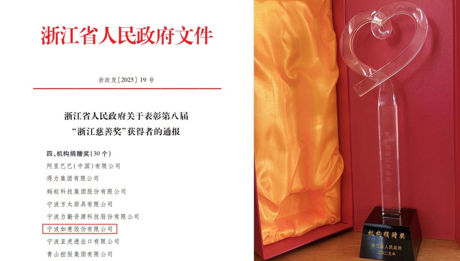 9月5日,第八屆“浙江慈善大會”在浙江省人民大會堂隆重召開,憑借公益慈善領(lǐng)域的持續(xù)慷慨投入與突出貢獻(xiàn),公司榮獲本屆“浙江慈善獎”機(jī)構(gòu)捐贈獎,名譽董事長儲吉旺受邀出席大會,在熱烈的掌聲中莊重地接過獎牌。這一重量級獎項,是對如意公司積極履行社會責(zé)任、真誠回饋社會的最高認(rèn)可。