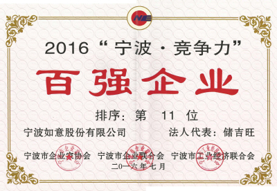 如意公司獲評(píng)寧波?競(jìng)爭(zhēng)力百?gòu)?qiáng)企業(yè)、寧波市制造業(yè)百?gòu)?qiáng)企業(yè)
