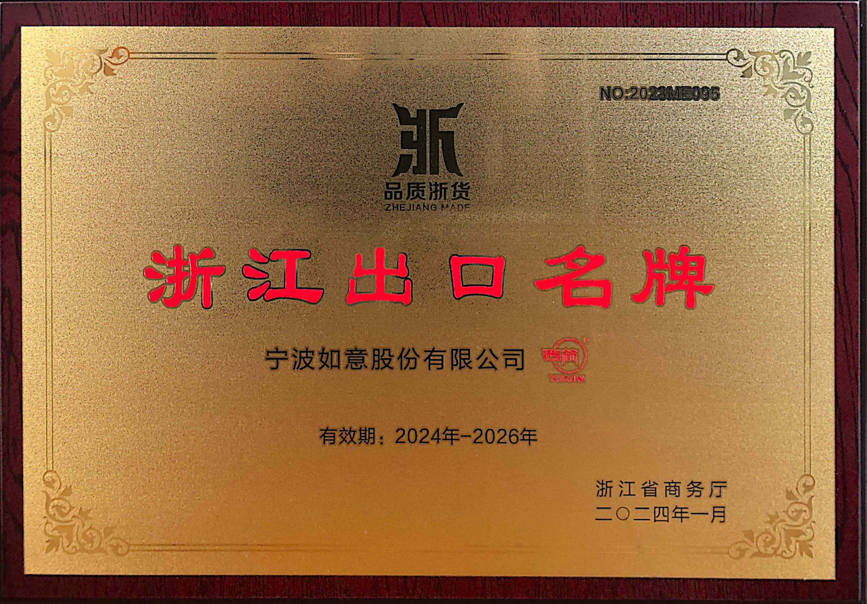 近日,寧波如意被授予“浙江出口名牌”榮譽(yù)稱(chēng)號(hào)。
