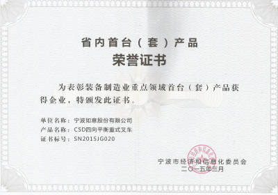 近日,寧波市經(jīng)信委發(fā)文: 為加快寧波市智能裝備產(chǎn)業(yè)發(fā)展,根據(jù)《寧波市裝備制造業(yè)重點(diǎn)領(lǐng)域首臺(tái)(套)產(chǎn)品認(rèn)定管理辦法》等文件精神,市經(jīng)信委會(huì)同市級(jí)有關(guān)部門組織專家對(duì)全市各地申報(bào)的60余個(gè)產(chǎn)品進(jìn)行了綜合評(píng)審及答辯,并向社會(huì)公示,共確定首臺(tái)(套)產(chǎn)品26個(gè),其中我公司的“CSD四向平衡重式叉車”名列在內(nèi)。