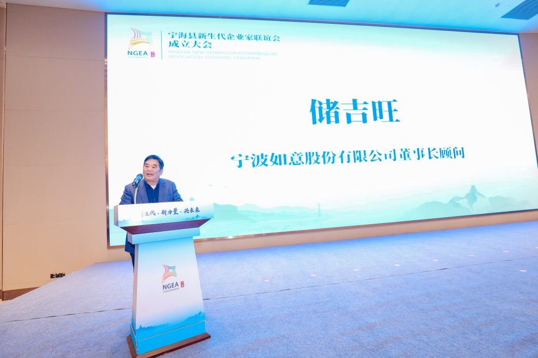 寧??h新生代企業(yè)家聯(lián)誼會成立——儲吉旺作為寧海老一輩企業(yè)家代表發(fā)言