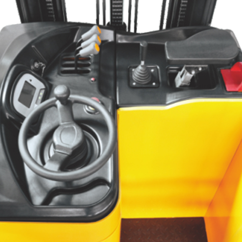 貨叉伸縮采用電控和液壓聯(lián)合控制,速度可調(diào)節(jié),平穩(wěn)無沖擊;